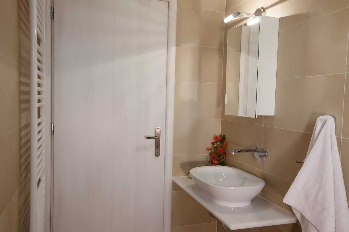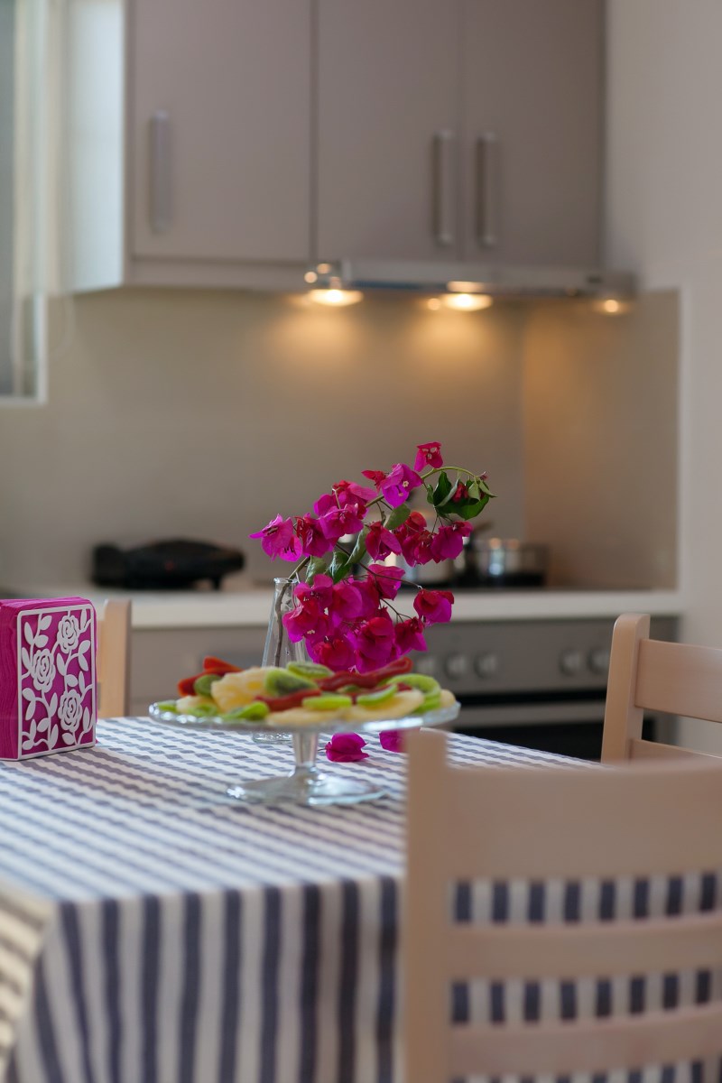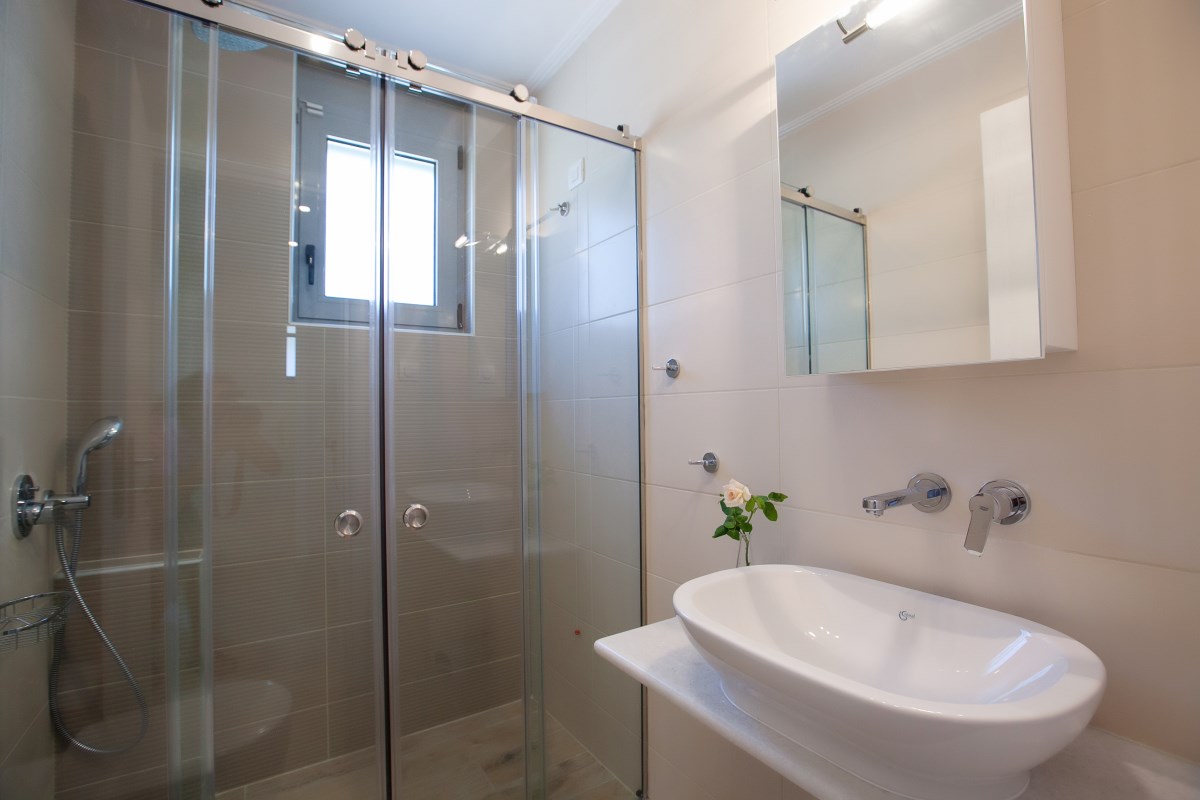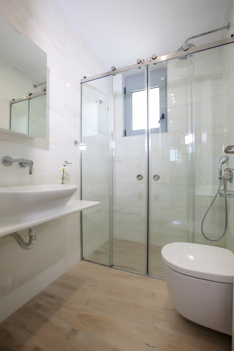 Spacious suite  ideal for families or group of friends with exquisite decor measuring approximately 70 m² floor area. Fully equipped with all the necessary facilities to meet your needs .The one room consisted of  a double size bed, the other room consisted of two single beds. There are two luxury bathrooms, sitting room with triple sofa and two armchairs. The kitchen is equipped with electric cooker, cooker hood, refrigerator, dishwasher, kitchenware, washing machine.In addition, tables with six chairs are provided in both the kitchen and the terrace. The entire suite is air-conditioned, and the aluminum windows and glazing feature thermal breaks for improved insulation. The sitting room is equipped with a 40-inch TV, satellite programming, and Wi-Fi internet access. An independent entrance with a secure, padded door is also available.